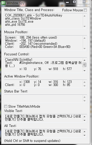 오토핫키에서 윈도우 정보를 얻어와 해당 윈도우를 컨트롤 해야할 일이 있따.